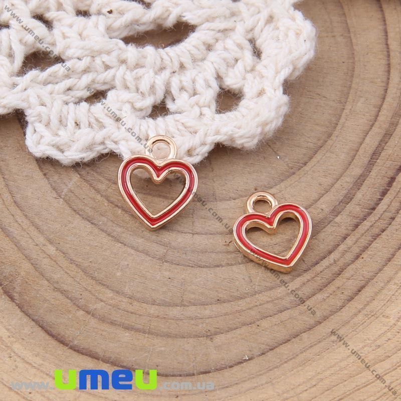[Архів] Підвіска металева Серце червоне, Золото, 12х10 мм (POD-028334) / 1 шт
