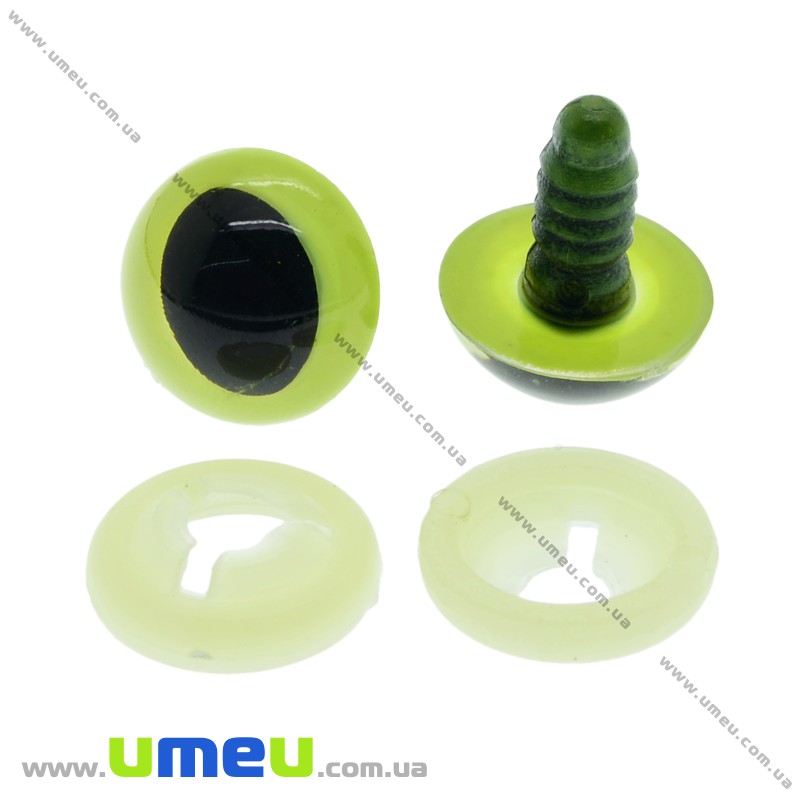 Очки з штифтом круглі (з заглушками), 15 мм, Салатовий-жовті (DIF-030538) / 1 комплект