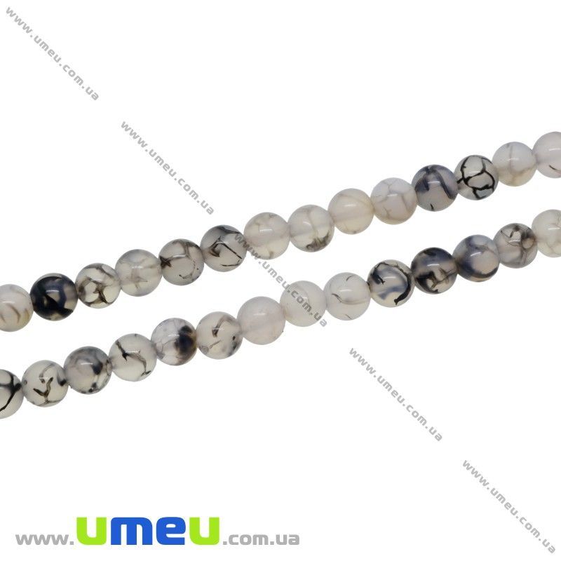 [Архів] Намистина натуральний камінь Агат Вени дракона сірий, 6 мм, Кругла (BUS-031553) / 1 шт