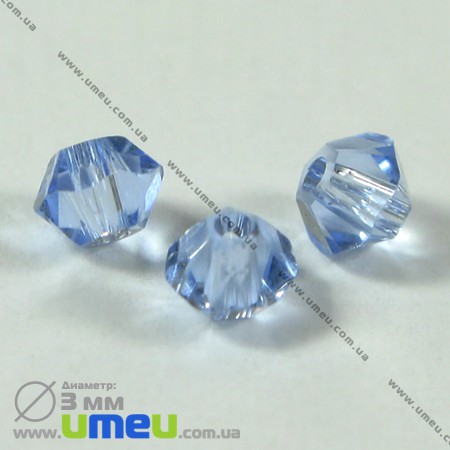[Архів] Намистина Swarovski 5301 Blue Zircon, 3х3 мм, Біконус (BUS-003220) / 1 шт