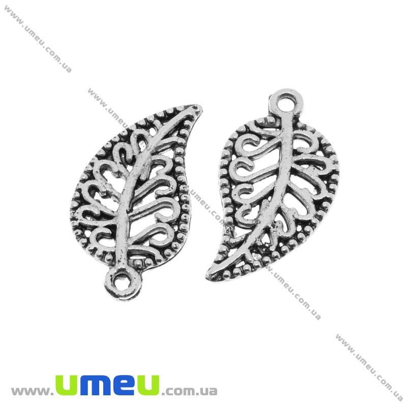 [Архів] Підвіска металева Листочок (двухстор.), Античне срібло, 19х10 мм (POD-032636) / 1 шт