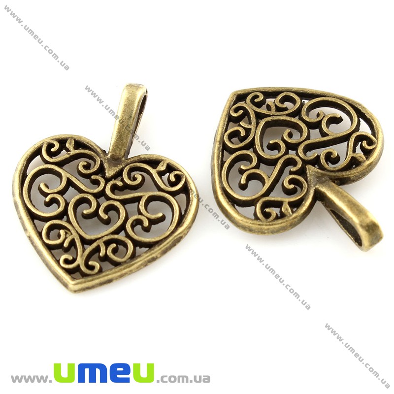 [Архів] Підвіска металева Серце ажурне, Антична бронза, 18х15 мм (POD-032660) / 1 шт