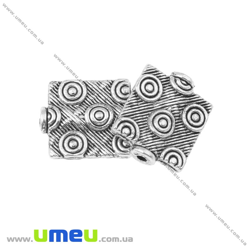 [Архів] Намистина мет. квадратна плоска, 12х10х3 мм, Античне срібло (BUS-003287) / 1 шт