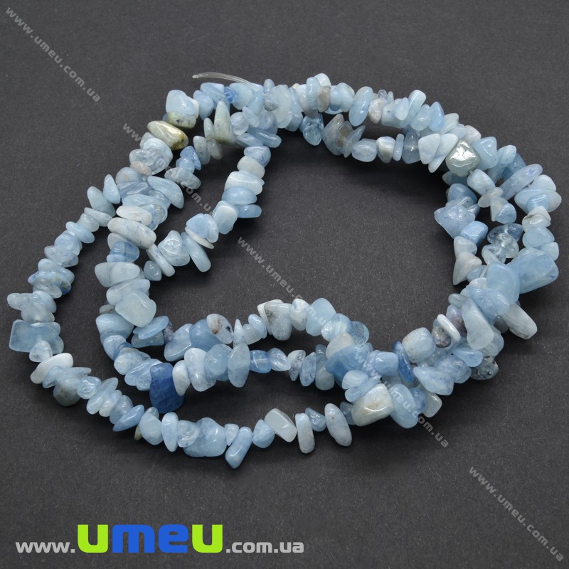[Архів] Скол (крихта) натуральний камінь Аквамарин, 5-8 мм (88-90 см) (BUS-033095) / 1 нить