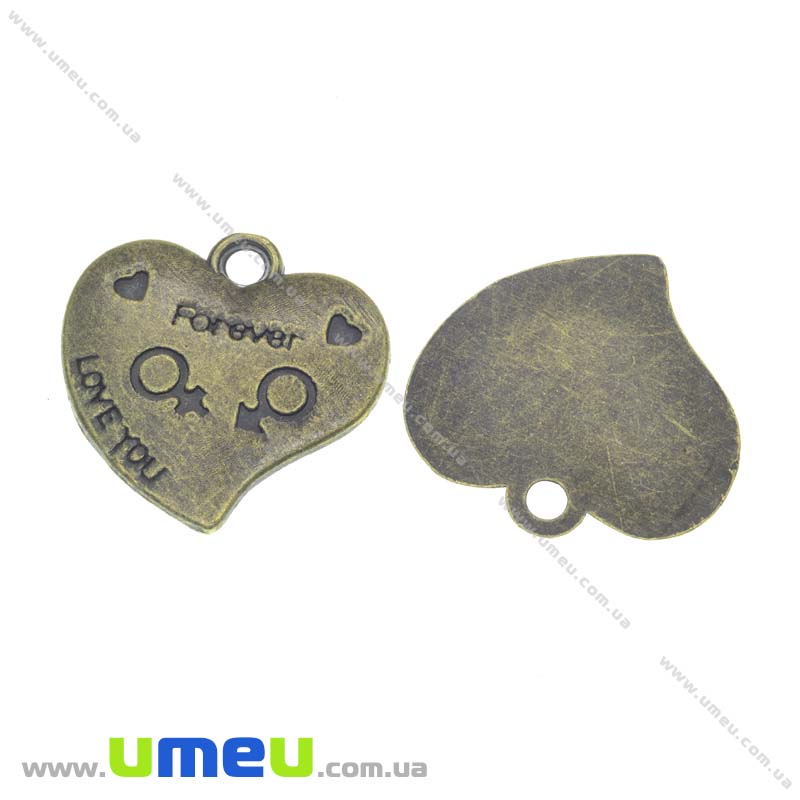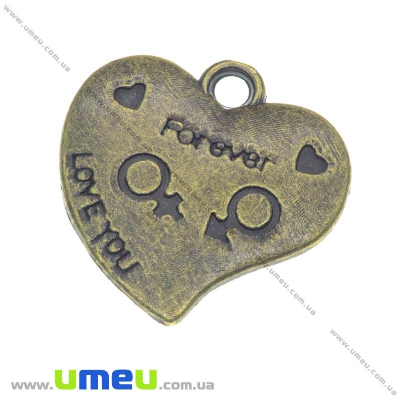 Підвіска метал. Серце, 26х26 мм, Антична бронза (POD-003346) / 1 шт