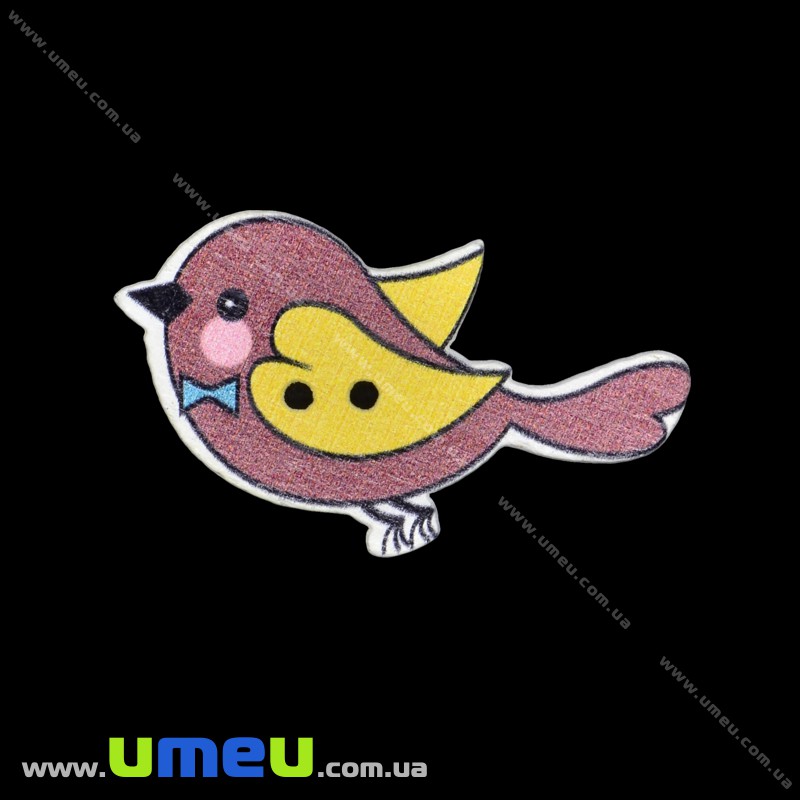 Декоративний пришивний елемент Пташка, 40х24 мм, Коричневий (DIF-033506) /