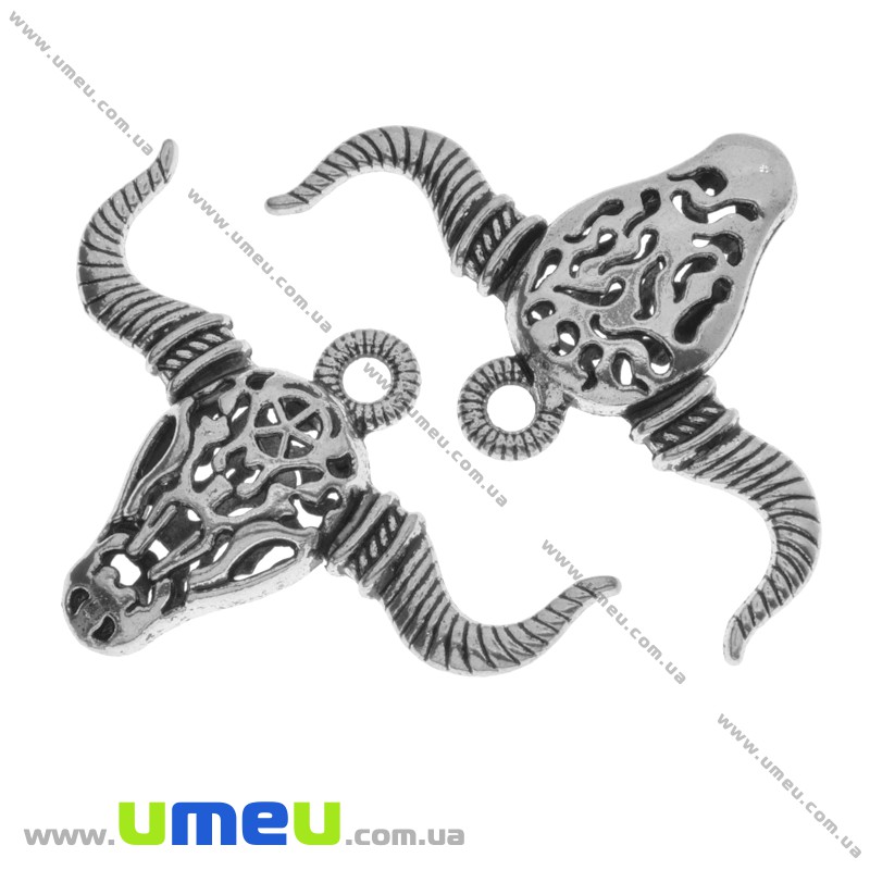 [Архів] Підвіска металева Голова Бика, Античне срібло, 35х53х9 мм (POD-003360) / 1 шт