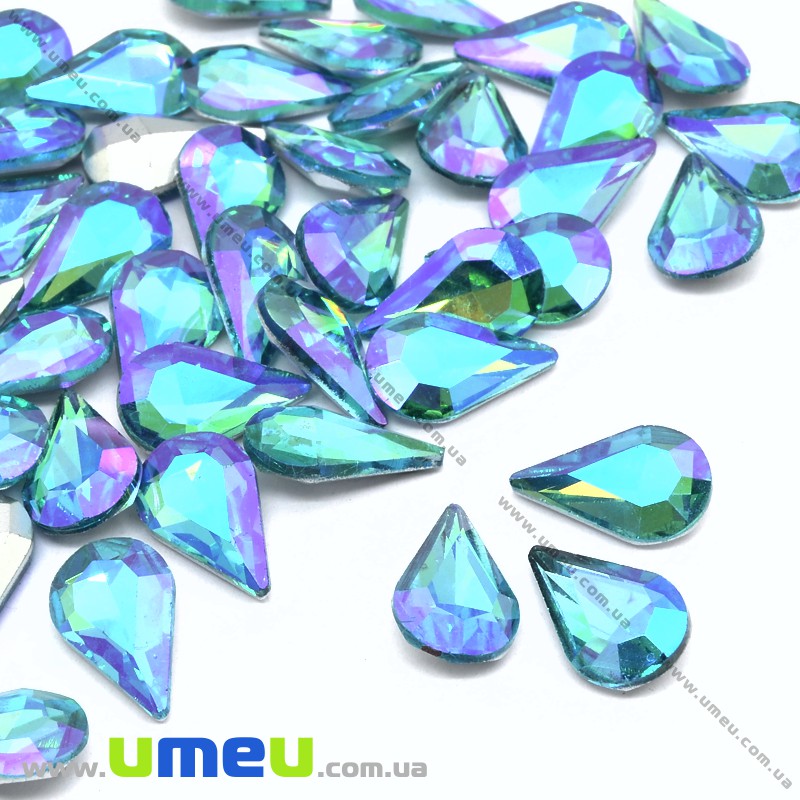 Ріволі скляний, Крапля гранована, Райдужний, 13х8 мм, Блакитний АВ (KAB-034011) / 1 шт