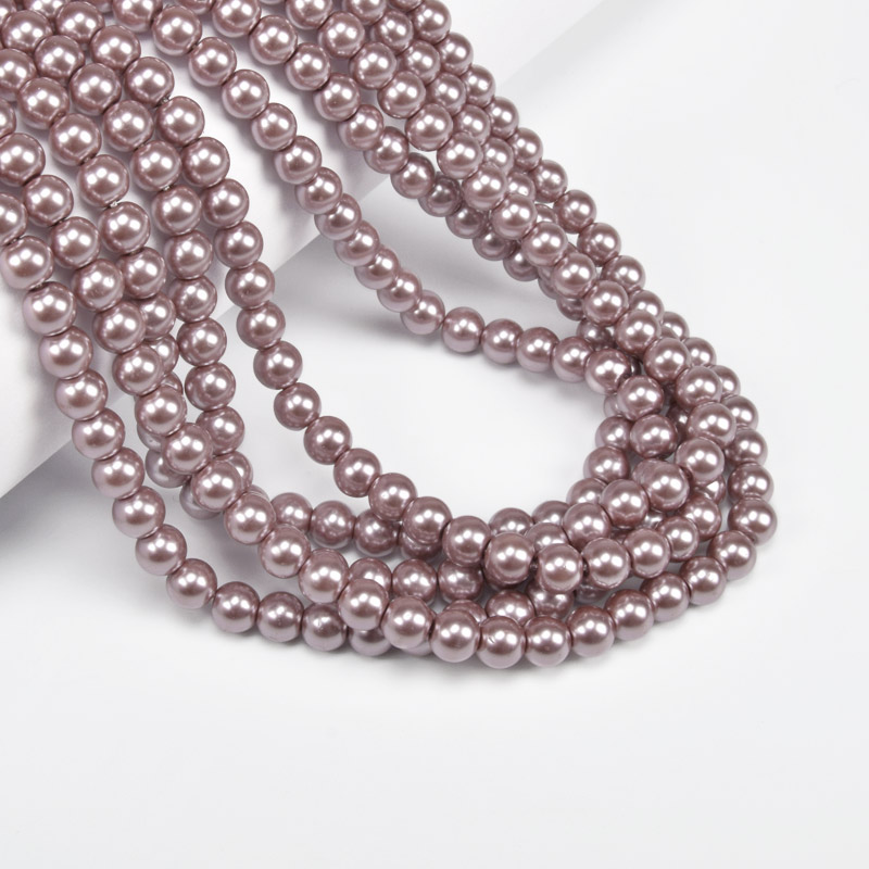 Намистини скляні Перли Premium, 6 мм, Пудрові, Круглі (BUS-034115) / 1 низка