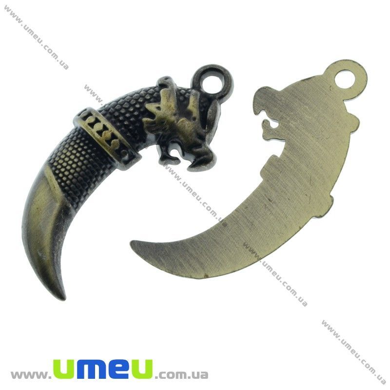 [Архів] Підвіска металева Зуб Вовка, Антична бронза, 43х21х5 мм (POD-003418) / 1 шт