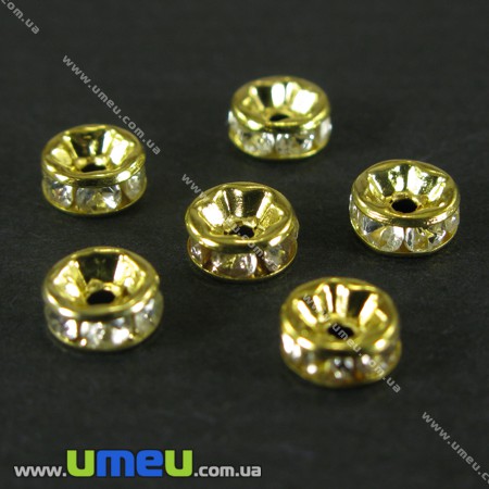 [Архів] Розділювач 6 мм, Золото, Стрази пластикові білі (OBN-000342) / 1 шт