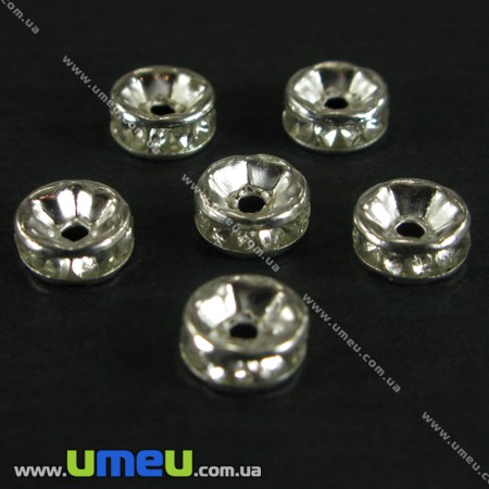 [Архів] Розділювач 7 мм, Срібло, Стрази пластикові білі (OBN-000343) / 1 шт