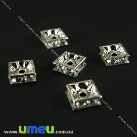 [Архів] Розділювач 8х8, Срібло, Стрази скляні білі (OBN-000344) / 1 шт
