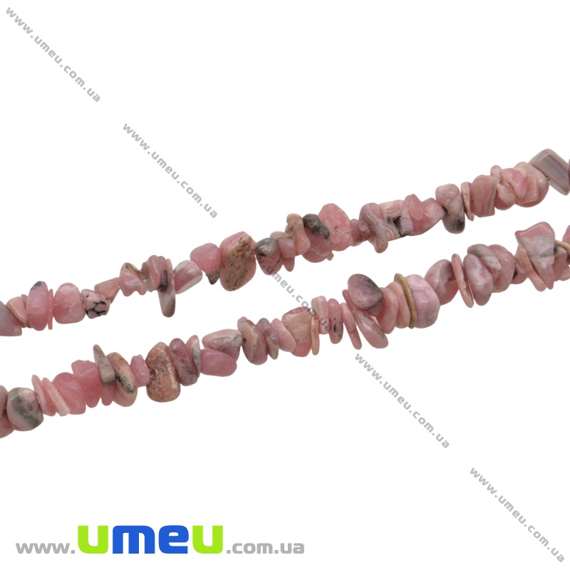 [Архів] Скол (крихта) натуральний камінь Родохрозит, 5-8 мм (88-90 см) (BUS-035485) / 1 нить