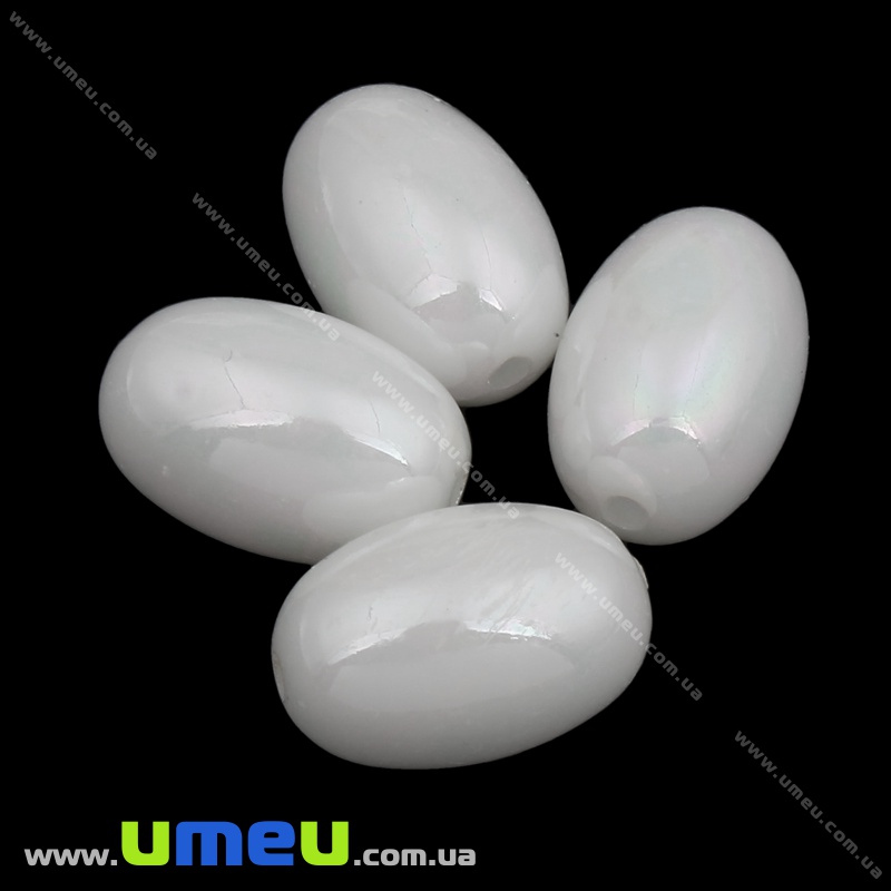 [Архів] Намистина пластикова овальна, 14х9 мм, Біла (BUS-035850) / 1 шт