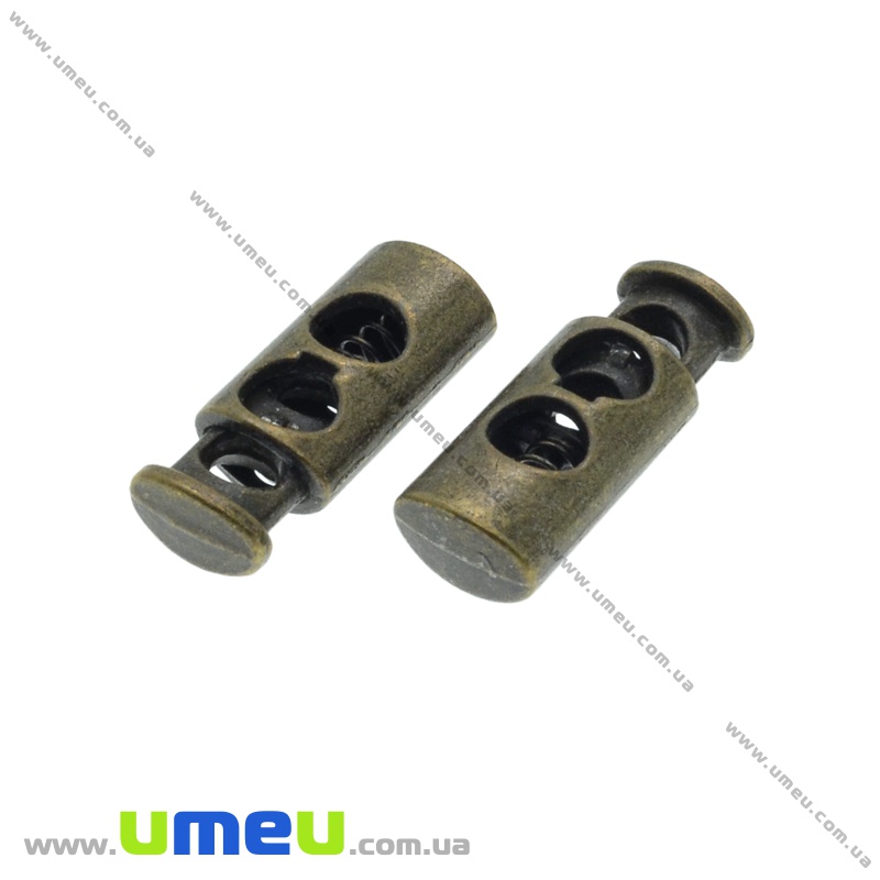 Фіксатор для шнура металевий на 2 отвори, 23х9х6 мм, Антична бронза (SEW-035964) / 1 шт