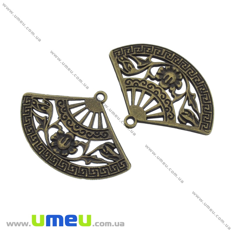 [Архів] Підвіска металева Віяло (двухстор.), Антична бронза, 36х25 мм (POD-036224) / 1 шт