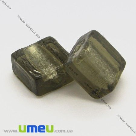[Архів] Намистина Lampwork Квадратна, 12х12х6 мм, Сіра (BUS-003625) / 1 шт
