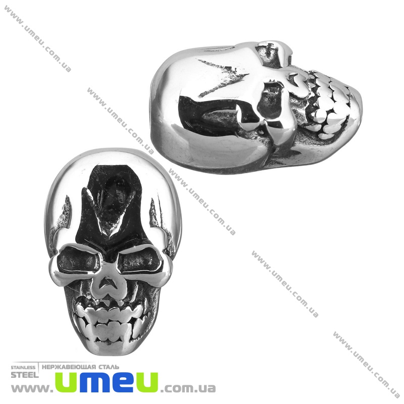 Намистина з нержавіючої сталі Череп, 13х8,5х7 мм, Темне срібло (STL-036517) / 1 шт