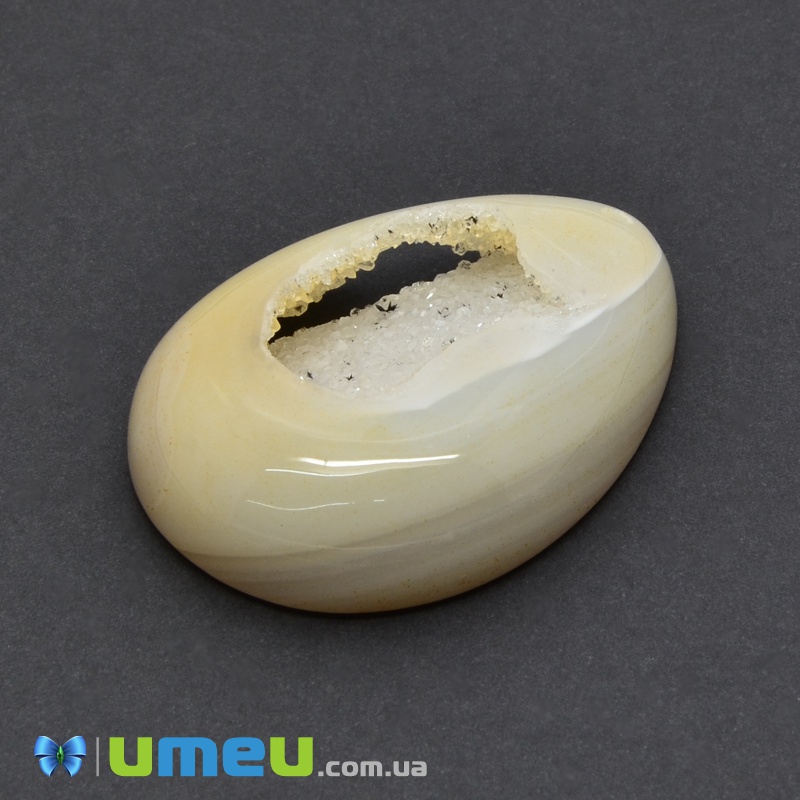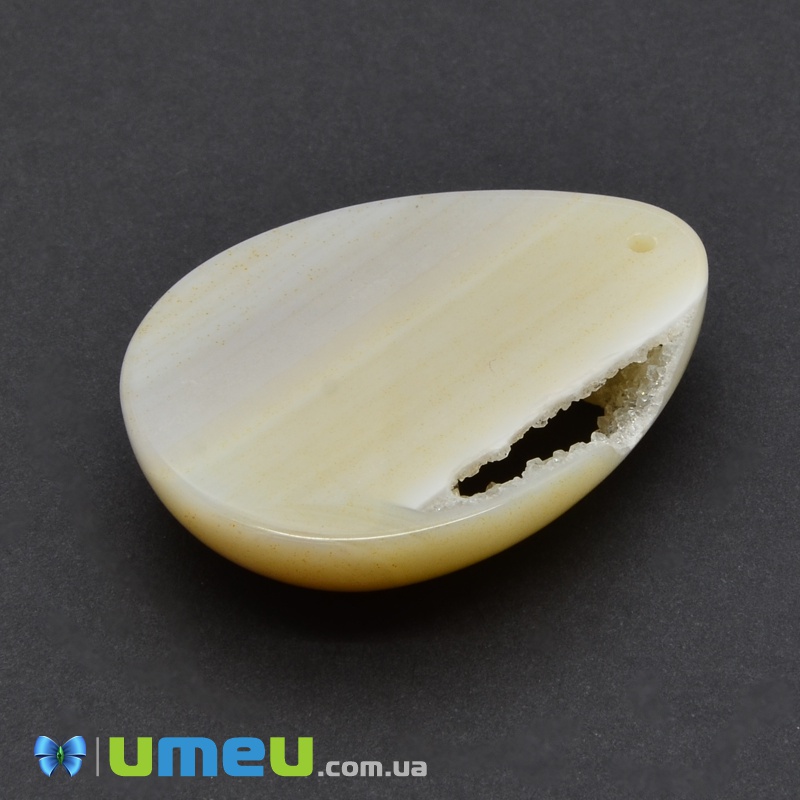 Підвіска з натурального каменю Агат сірий з друзою, Крапля, 40х30 мм (POD-036995) /