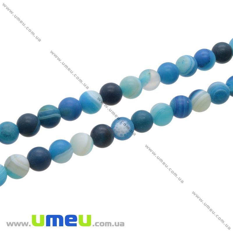 [Архів] Намистина натуральний камінь Агат смугастий матовий синій, 6 мм, Кругла (BUS-037076) / 1 шт
