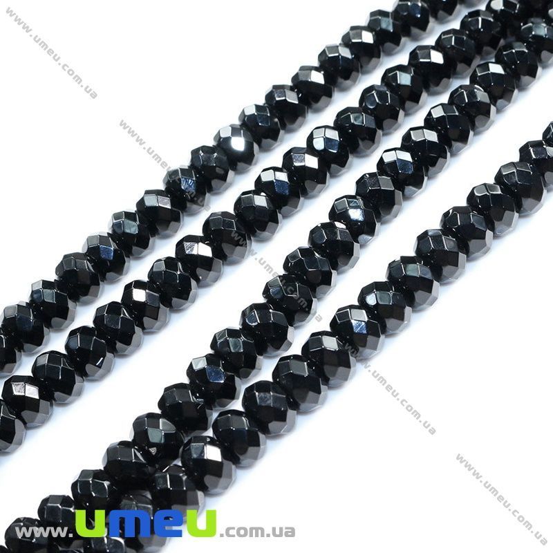 [Архів] Намистина натуральний камінь Агат чорний, 6х3 мм, Рондель (BUS-037084) / 1 шт