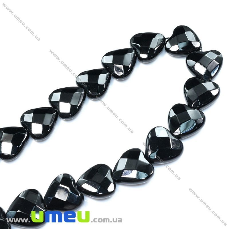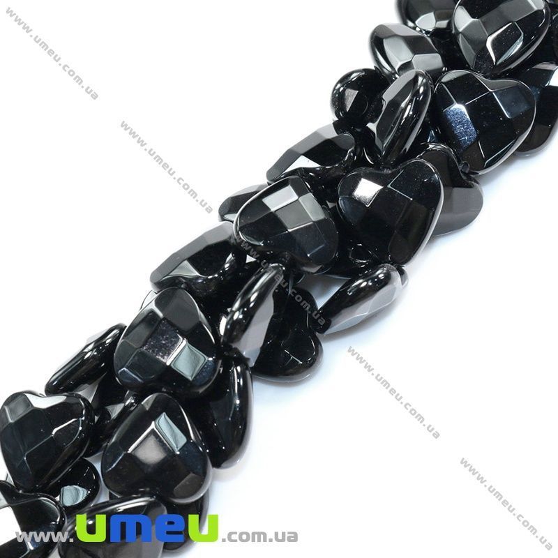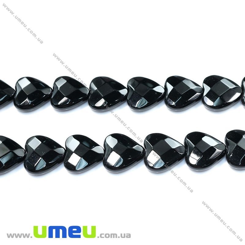 [Архів] Намистина натуральний камінь Агат чорний, 14х14 мм, Серце грановане (BUS-037085) / 1 шт