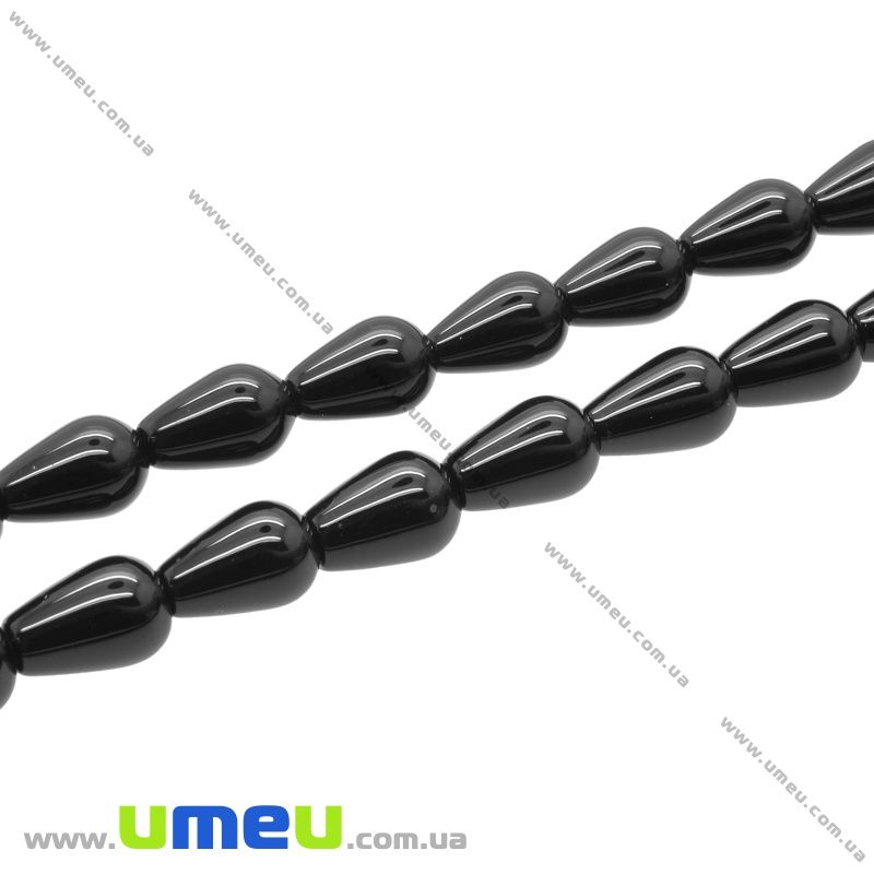 [Архів] Намистина натуральний камінь Агат чорний, 12х8 мм, Крапля (BUS-037086) / 1 шт