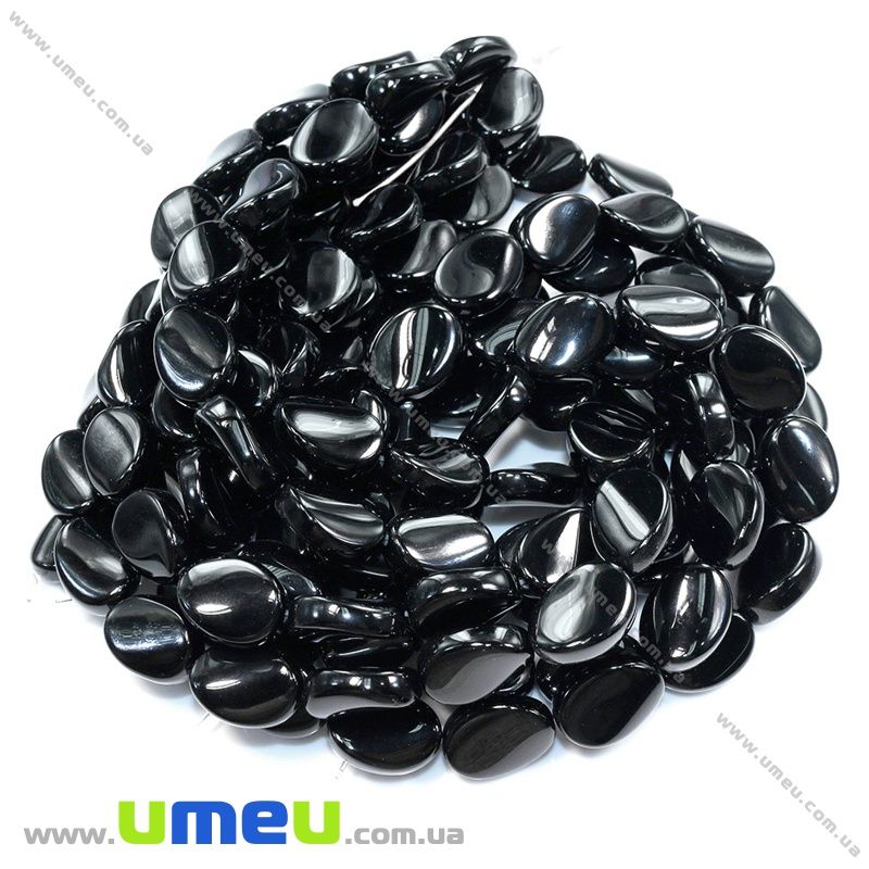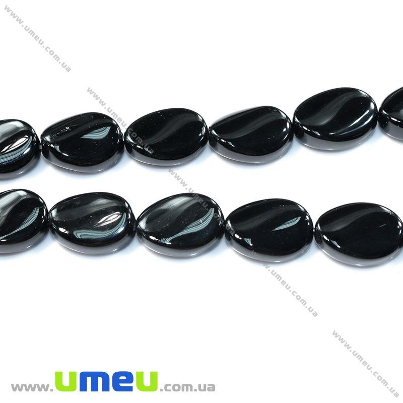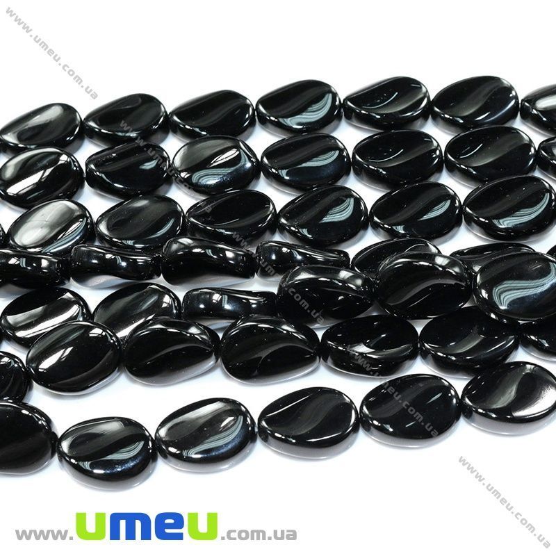 [Архів] Намистина натуральний камінь Агат чорний, 16х12 мм, Овал скручений (BUS-037087) / 1 шт