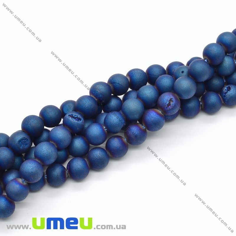 [Архів] Намистина натуральний камінь Агат з друзою і напиленням, Синя, 6-7 мм (BUS-037270) / 1 низка
