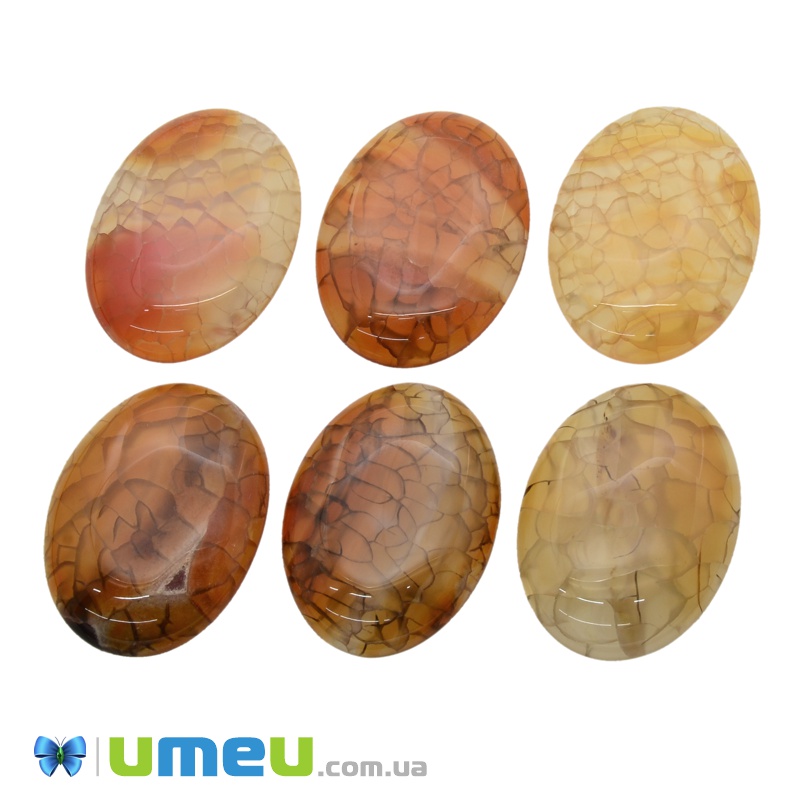 Кабошон нат. камінь Агат Краклє бежевий, Овал, 40х30 мм (KAB-038550) / 1 шт