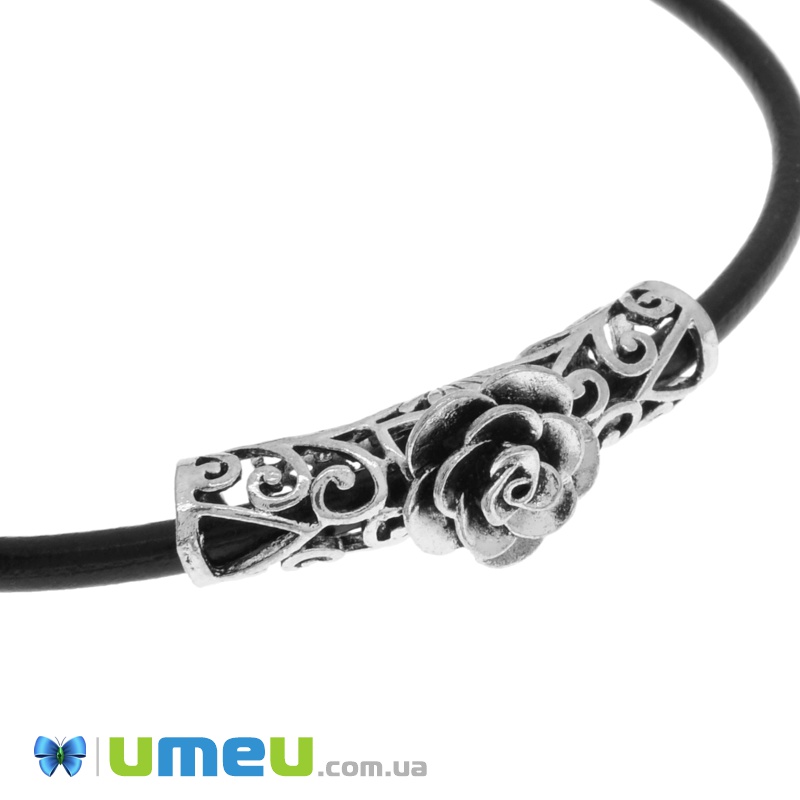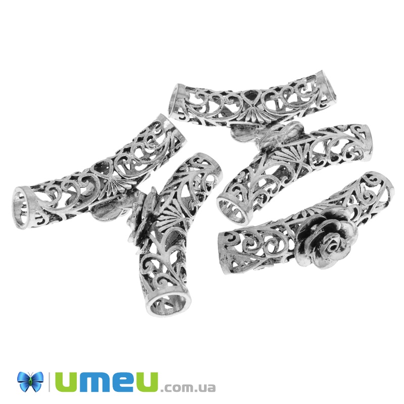 Намистина мет. Трубочка з квіткою, 43х9,5 мм, Античне срібло (BUS-039060) / 1 шт