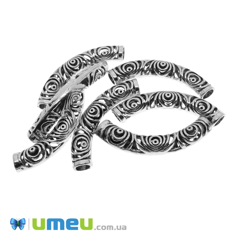 Намистина мет. Трубочка, 52х9 мм, Античне срібло (BUS-039061) / 1 шт