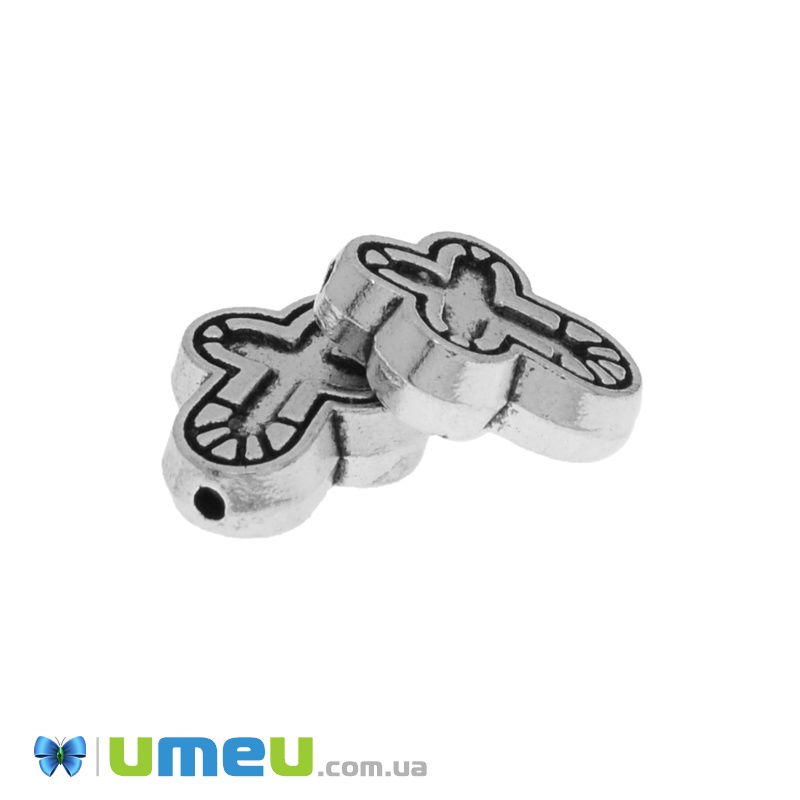 [Архів] Намистина мет. Хрест, 14х11,5 мм, Античне срібло (BUS-039065) / 1 шт