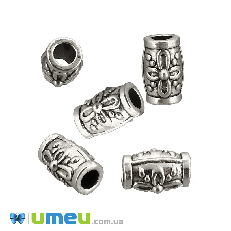 Намистина мет. Бочонок, 10х7 мм, Античне срібло (BUS-039078) / 1 шт