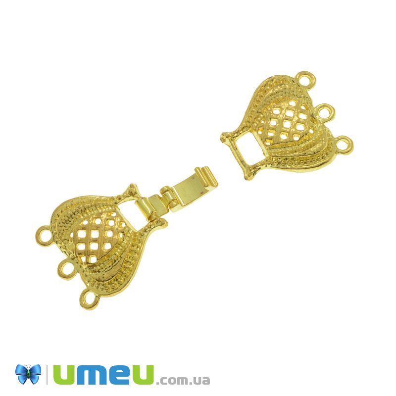 [Архів] Застібка на 3 нитки, Золото, 43х20 мм (ZAM-039626) / 1 шт