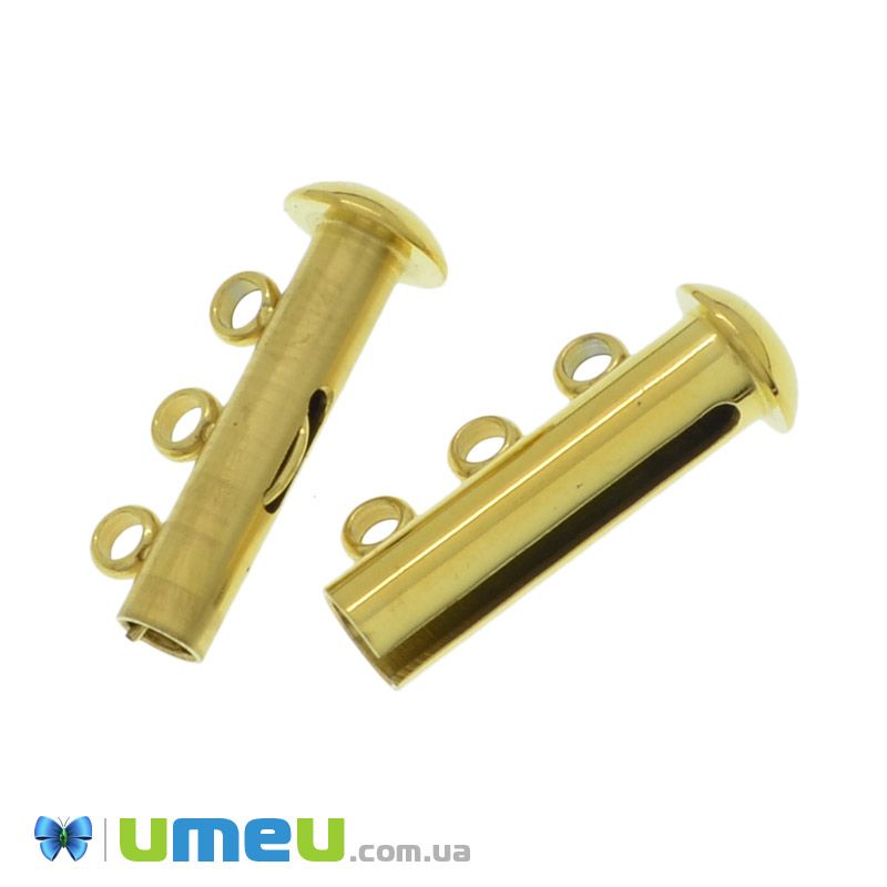 Замок слайдер на 3 нитки із нерж. сталі, 20х10 мм, Золото (STL-039710) / 1 шт