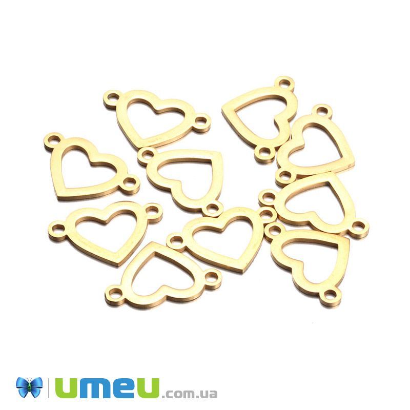 Конектор з нерж. сталі Серце, 20х12 мм, Золото (STL-039720) / 1 шт