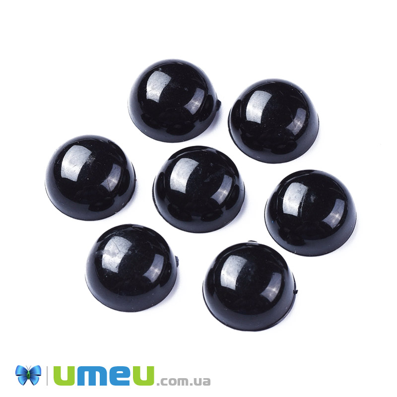 Кабошон пластиковий, Круглий, 14 мм, Чорний (KAB-040462) / 1 шт