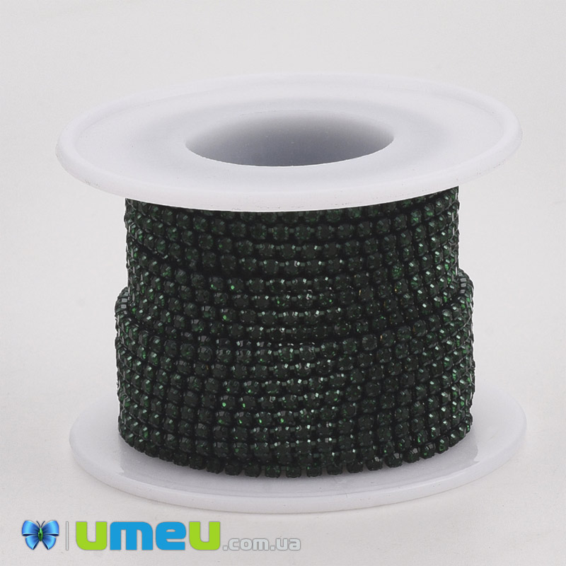 Стразовий ланцюг SS6 - 2,0 мм, Смарагдовий, Стрази скляні смарагдові (ZEP-040477) / 1 м