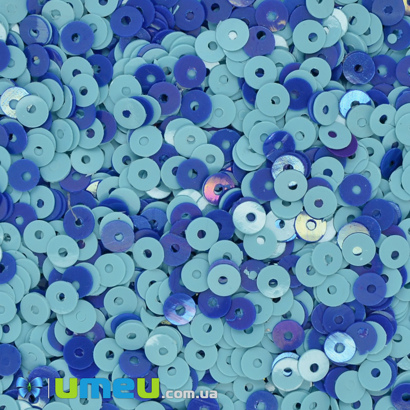 Паєтки Індія круглі плоскі, 4 мм, Мікс синьо-блакитний (PAI-041435) /