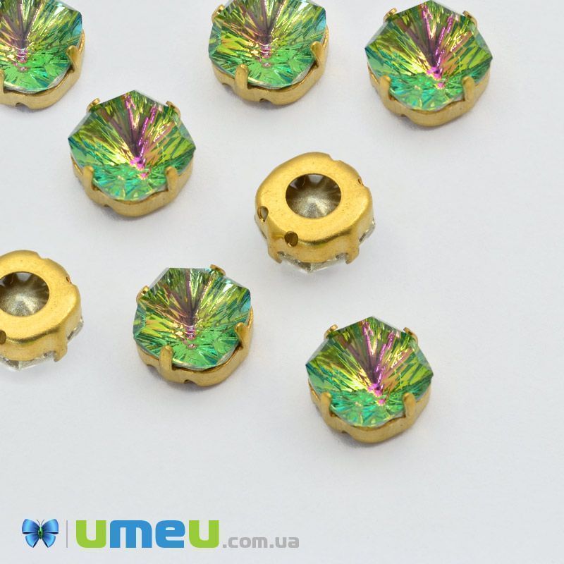Шатон квадратний 11х11 мм, Золото, Рожево-зелений (KAB-041849) / 1 шт