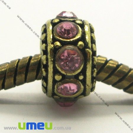 [Архів] Намистина PANDORA мет. зі стразами, 10х6 мм, Рожева, Антична бронза (BUS-004244) / 1 шт