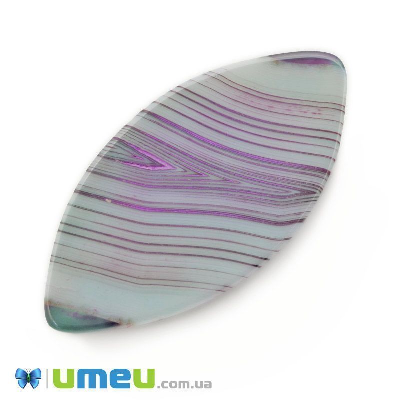 Кабошон нат. камінь Агат Бразильський фіолетово-зелений, Човен, 38,5х19,5 мм (KAB-042762) / 1 шт