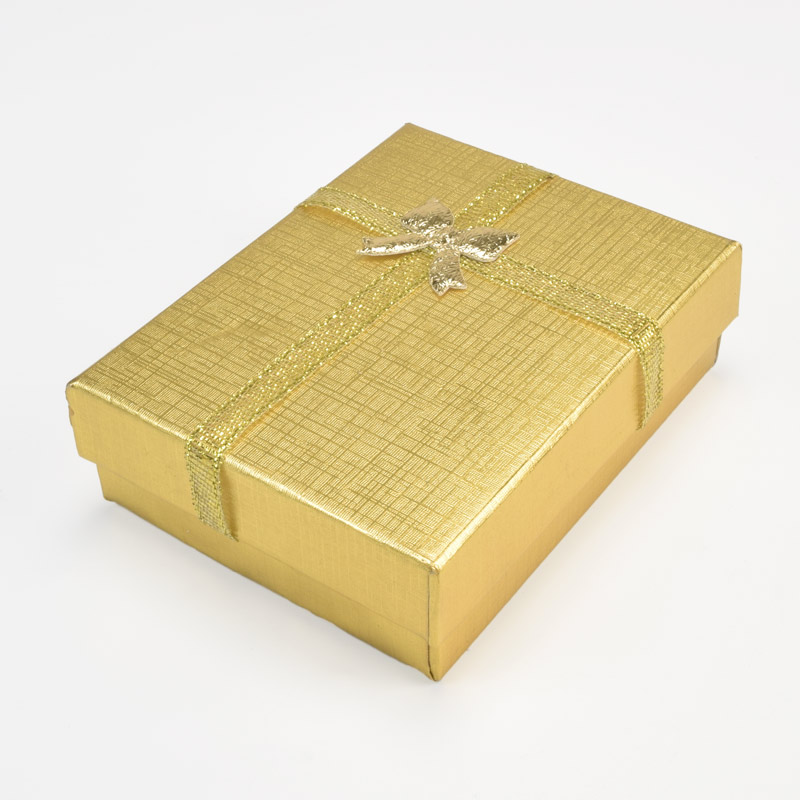 Подарункова коробочка Прямокутна з бантиком, 9х7х2,5 см, Золотиста (UPK-042827) / 1 шт