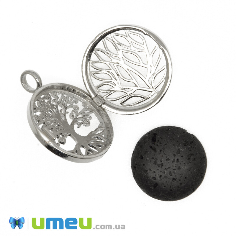 Підвіска-медальйон із натурального каменю Дерево, Лава, 31х26 мм (POD-043103) / 1 шт
