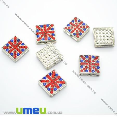 [Архів] Намистина Шамбала квадратна Британський прапор, 13х13 мм, Метал, Темне срібло (BUS-004334) / 1 шт