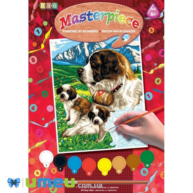 Картина із зображенням симпатичних сенбернарів. Створити картину з набором для творчості - дуже просто. Набір Sequin Art містить все необхідне: шаблон з пронумерованими ділянками, фарби відповідних кольорів, пензлик. Розмір картини 30 х 23 см. Рекомендований вік 8+