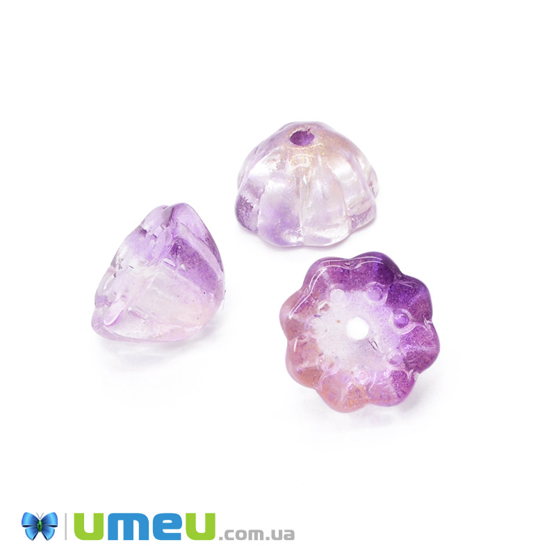 Бусина скляна, 10,5х6,5 мм, Квітка, Бузкова (BUS-044301) /