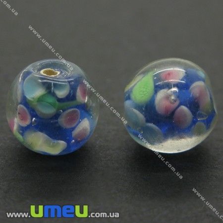 [Архів] Намистина Lampwork, 12 мм, Кругла, Синя (BUS-004536) / 1 шт